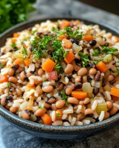 This hearty, comforting dish is perfect for cozy evenings, lazy weekends, or any time you want a warm, budget-friendly meal. Inspired by Southern traditions and classic New Year’s black-eyed peas, this slow-cooked recipe combines tender beans, fluffy rice, and savory vegetables for a satisfying one-pot dinner that’s easy to prepare and full of flavor.