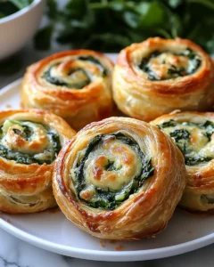 Cheesy Spinach and Artichoke Pinwheels earn their “no fail” title for several reasons. First, the filling is forgiving and flexible, meaning small adjustments will not ruin the final result. Second, the pastry provides structure while staying crisp and flaky. Third, the flavors are familiar and universally loved, making them a safe yet impressive choice for nearly any audience.
