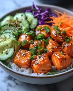 One of the greatest advantages of this dish is how approachable it is. Even beginner cooks can achieve impressive results with just a few simple techniques. The salmon cooks quickly, the sauce comes together in minutes, and the bowl assembly allows for endless creativity. Whether you are preparing dinner for family, cooking for friends, or planning meals for the week, these bowls make the process enjoyable and rewarding.