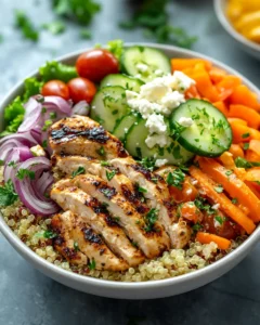 A Healthy Greek Chicken Bowl with Fresh Veggies is more than just a quick meal; it is a vibrant combination of fresh ingredients, bold Mediterranean flavors, and nourishing components that come together in perfect balance. This dish proves that healthy eating does not need to be complicated or bland. With simple ingredients like grilled chicken, crisp vegetables, wholesome grains, and creamy yogurt sauce, you can create a satisfying meal that feels both light and indulgent.