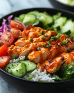 Irresistible Buffalo Chicken Bowls are more than just a quick dinner solution; they’re a reminder that bold, exciting flavors don’t have to be complicated. This recipe brings together everything we crave in a satisfying meal: warmth, spice, freshness, and balance. Each component plays its part, from the fluffy rice that anchors the bowl to the saucy chicken that delivers that unmistakable buffalo-style kick.