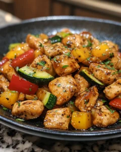 This recipe is all about contrast and harmony. Juicy chicken pieces are seared until golden, while zucchini stays tender-crisp, never soggy. Garlic, ginger, and a savory sauce bring depth without overpowering the vegetables. The result is a well-rounded dish that feels light but delivers on flavor.