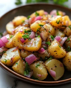 Irresistible German Potato Salad Ultimate Comfort Classic is proof that simple ingredients can create extraordinary flavor. It doesn’t rely on heavy dressings or complicated techniques. Instead, it celebrates the humble potato and elevates it through thoughtful preparation and balanced seasoning.