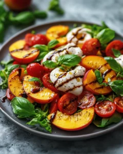 Irresistible Peach Burrata Salad with Balsamic Drizzle