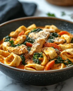 What makes this dish especially lovable is its balance. The broth is creamy without being heavy-handed, the chicken is tender and filling, and the tortellini brings that special “comfort pasta” feeling that makes everyone linger over the bowl. Add spinach at the end and you get a pop of color and freshness that keeps the dish from feeling one-note. It’s a small step that makes the whole meal feel brighter.