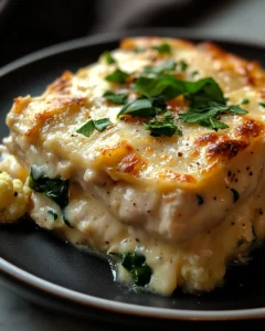 This casserole succeeds because it balances richness with simplicity. Instead of relying on starchy fillers, it uses naturally low carb vegetables and a carefully seasoned cream-based sauce to create depth of flavor. The chicken stays juicy, the sauce is luxuriously smooth, and the baked top develops a lightly golden finish that makes every bite irresistible.