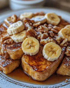 Imagine waking up to the smell of baked custard and cinnamon wafting through your home. The first bite of soft bread, sweet banana, and crunchy walnut, combined with a touch of maple syrup, makes breakfast feel like a special occasion. This recipe turns an ordinary morning into a moment worth savoring.