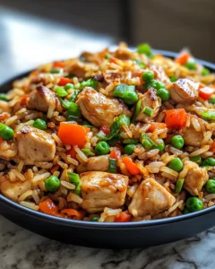 Fried rice is often seen as a way to use leftovers, but this version elevates the concept into a complete, intentional meal. The combination of tender chicken, crisp vegetables, and fluffy rice creates layers of texture that keep every bite interesting. The sauce brings everything together, ensuring that the dish never feels dry or bland.