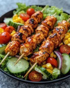 Whether you’re cooking for guests, meal-prepping for the week, or simply craving something fresh and flavorful, this BBQ Chicken Skewer Salad delivers a perfect balance of comfort and freshness.