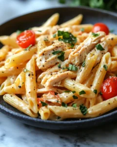Ultimate Creamy Rotisserie Chicken Pasta is more than just a quick dinner solution; it’s a reminder that simple ingredients can create extraordinary meals. The beauty of this dish lies in its balance. The tender shredded chicken provides savory depth, while the garlic and onion form a comforting aromatic base. The heavy cream and melted cheeses create a velvety sauce that clings to every piece of pasta, ensuring each bite is rich and satisfying.