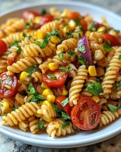 Short, twisty pasta shapes such as rotini, fusilli, or bowties work best because they hold onto the creamy dressing and small bits of vegetables. Whole wheat pasta adds extra fiber and a slightly nutty flavor that complements the sweet corn nicely. If you prefer gluten-free options, chickpea or lentil pasta can also be used. Just be sure to cook gluten-free pasta carefully and rinse it well to prevent sticking or gumminess.